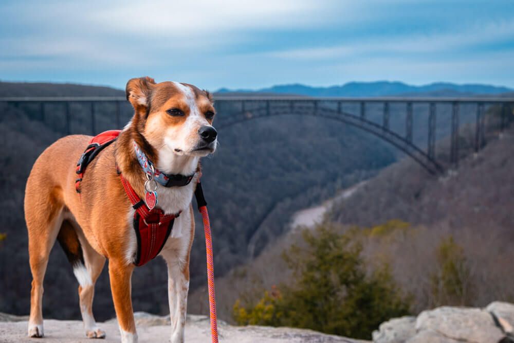 Yes!! The New River Gorge National Park is one of the few national parks in the country where you can explore the park and its trails with your dog.